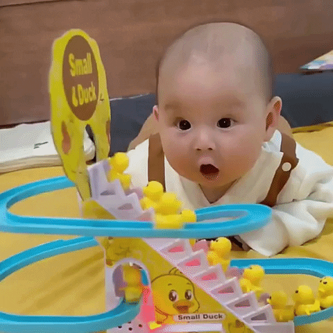 Мой сын любит уток. Они заставляют его смеяться. ему так весело.