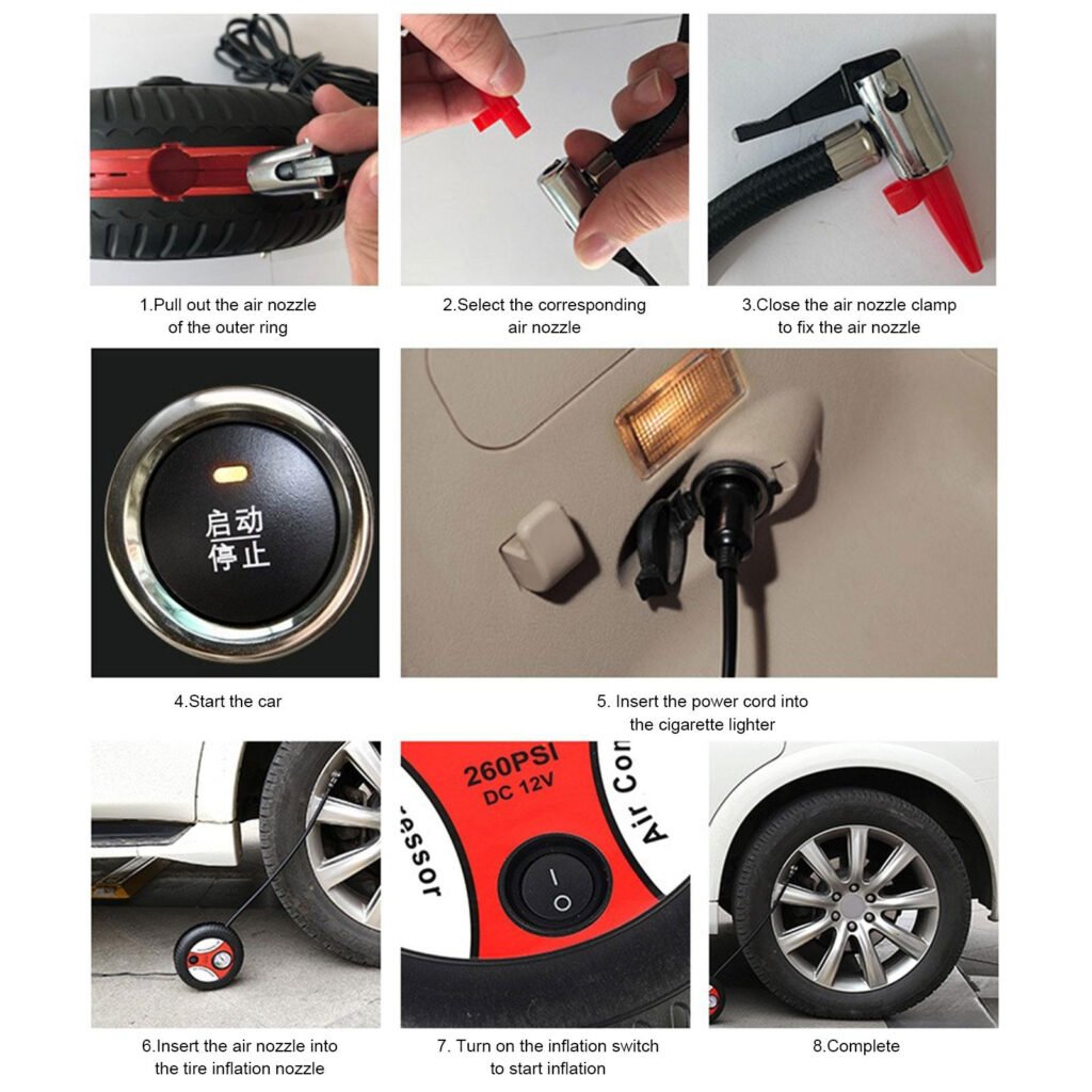 Hava kompressoru avtomobil, motosikl, velosiped, şarlar, rezin qayıqlar, şişirilən oyuncaqlar və s. üçün uyğundur.