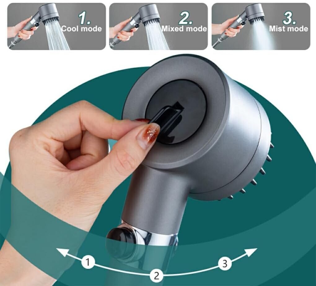 Açma/Söndürmə Düyməsi: Duş zamanı suyu tez açıb söndürməyə imkan verir, xüsusilə də saçları yuyarkən faydalıdır. Bu xüsusiyyət krant açıb-bağlamağı aradan qaldırır və suyun temperaturunu yenidən tənzimləmək üçün praktik həll təklif edir.