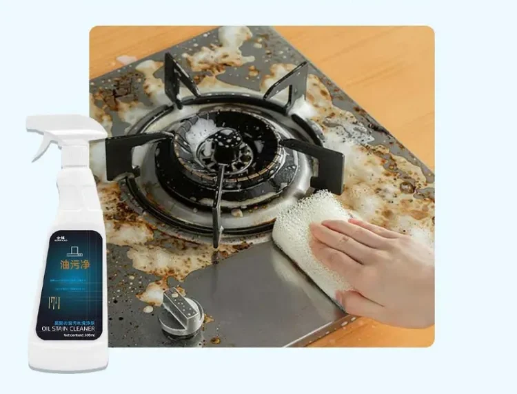 Yağ təmizləyici sprey çətin yağlı ləkələrin silinməsi üçün istifadə edilir, heç bir əlavə mexaniki güc tələb etmir. Bu inadkar ləkə təmizləyicisi yağlı, ən çirkli soba və ya mətbəx qablarını asanlıqla təmizləyir.
