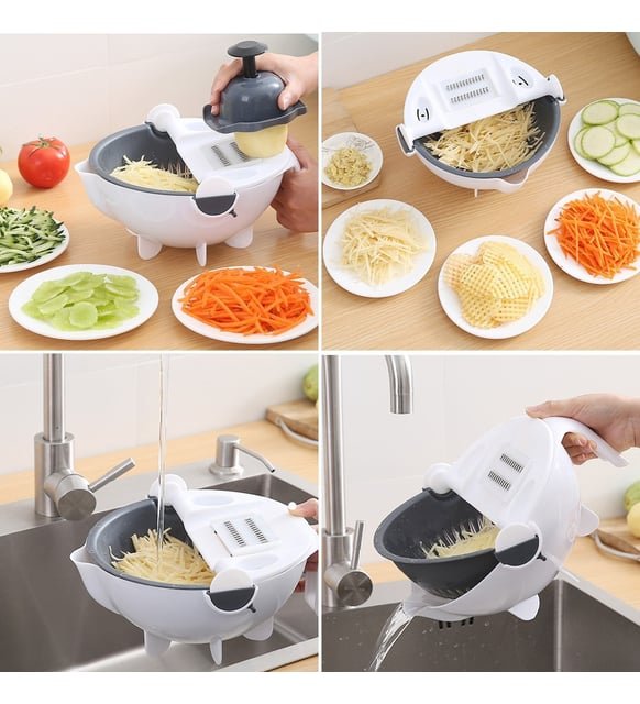 Universal Doğrayıcı özündə 9 xüsusiyyəti birləşdirir və onunla mətbəxdə işləriniz iki qat daha sürətli və rahat olacaqdır. Özündə süzgəc xüsusiyyəti daşıması doğradığınız tərəvəzləri yerindəcə başqa qab bulamada yumağa imkan verir.