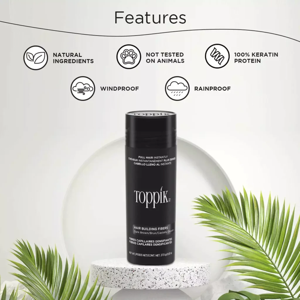 Toppik Kirşanı başınızda keçəlləşmiş və ya seyrelmiş yerləri dərhal doldurur. İstifadə sonrası saçlarınızda əsla hiss edilmir və küləyə, yağışa və tərə davamlıdır;